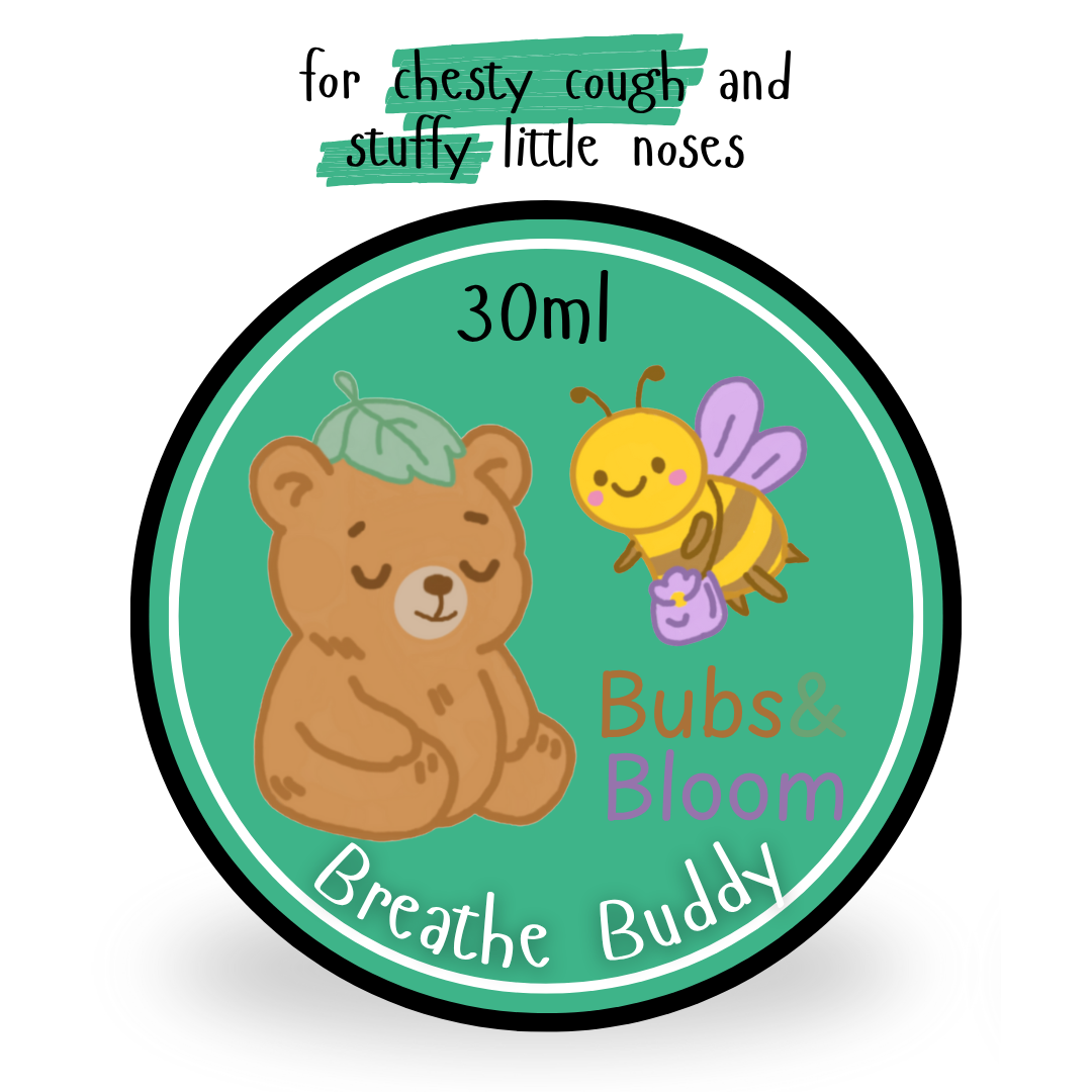 When breathing gets tough, Breathe Buddy comes to the rescue. This gentle yet effective blend is made for little ones struggling with chesty coughs and congestion, especially during colds or bedtime sniffles.